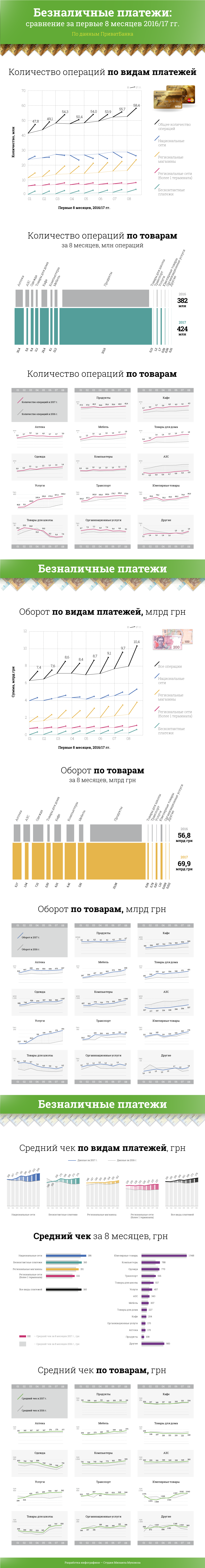 Инфографика: За 8 месяцев 2017 года количество безналичных платежей в «ПриватБанке» увеличилось на 11%