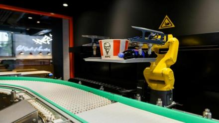KFC откроет ресторан нового формата в РФ. В нём нет касс, заказы доставляет конвейер, а роборука подает их посетителю (фото)