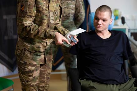 Голова НБУ особисто доставив картку військовому з ампутаціями