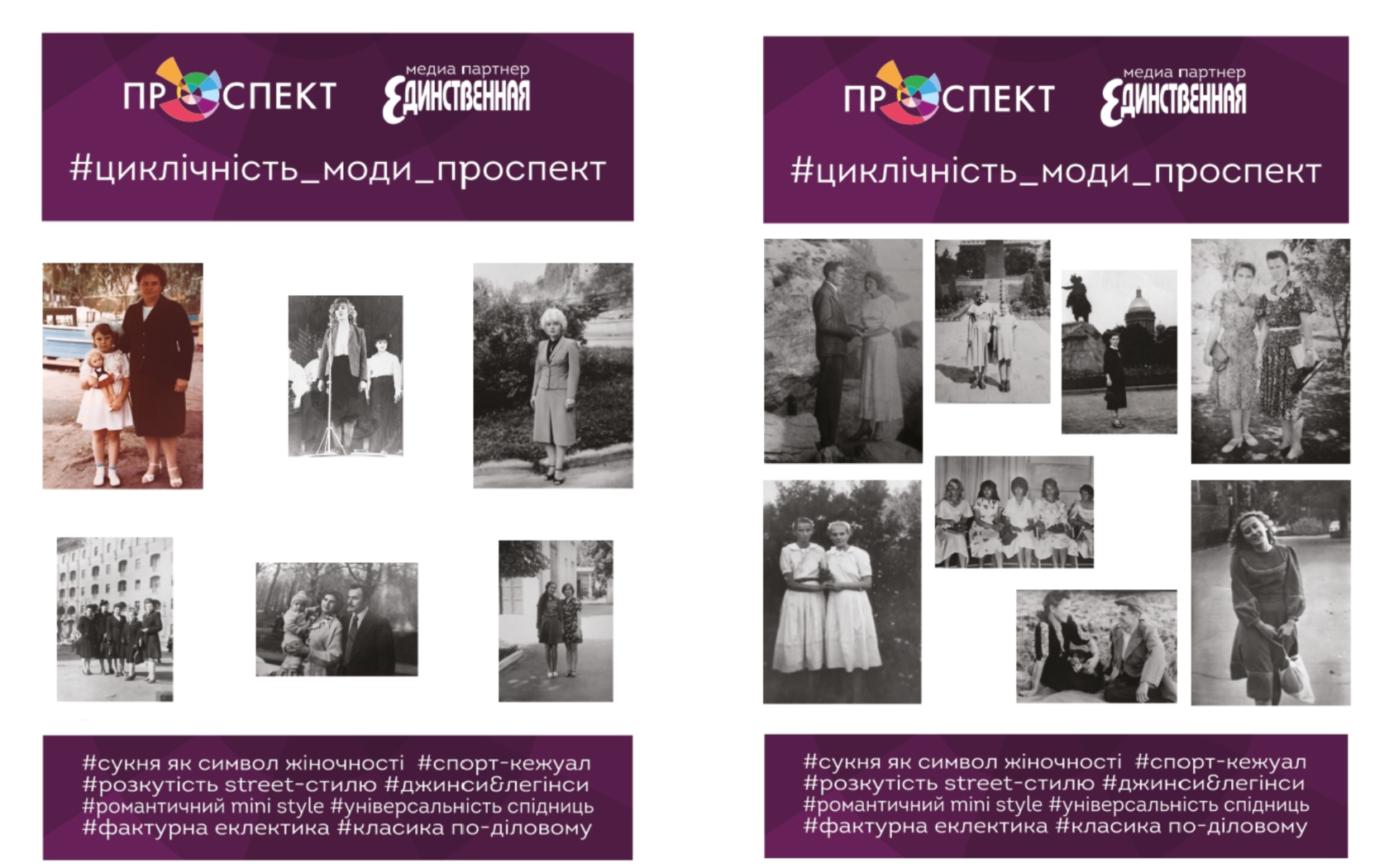 У 2019 році ми вперше провели ілюстровану фото-виставку «Циклічність моди в ТРК «Проспект» із нашими бренд-партнерами Reserved, Conte, Сolin's, VOVK, Cropp та Sinsey.
