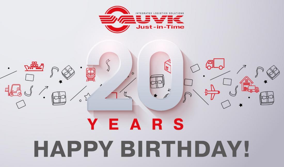 25 травня Компанія UVK святкує Ювілей – 20 років від дня заснування! Компанія UVK була заснована у далекому 2001 році, як перший 3-PL оператор України, і на сьогодні входить в ТОП-10 3-PL операторів країни та надає послуги комплексної логістики в локальному та міжнародному напрямках.
